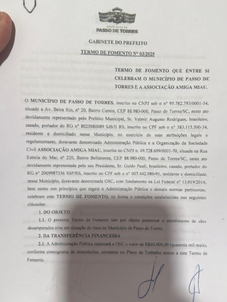 Além deste, nenhum outro recurso público, de qualquer origem, foi destinado a nossa Associação.Lembramos ainda que além distribuição de ração aos tutores, na média de aproximadamente 150 Kg por mês, atendimentos de emergências decorrentes de animais atropelados, feridos e doentes, cesarianas, eutanásias, medicamentos etc. com recursos oriundos de mensalidades de sócios, brechós e outras campanhas de arrecadação de fundos ainda foi realizado um considerável número de castrações de caninos e felinos, machos e fêmeas, com recursos próprios e provenientes do Termo de Fomento 03/2025, supra mencionadosDevemos registrar ainda que a Associação Amiga MiAu não possui local para recolhimento e abrigo de animais abandonados.